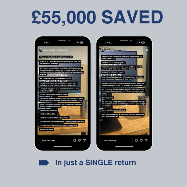 We review your company structure and shareholding, profit extraction methods, director remuneration, VAT position, Corporation Tax, personal tax exposure, R&D usage, capital allowances, and any overlooked reliefs.